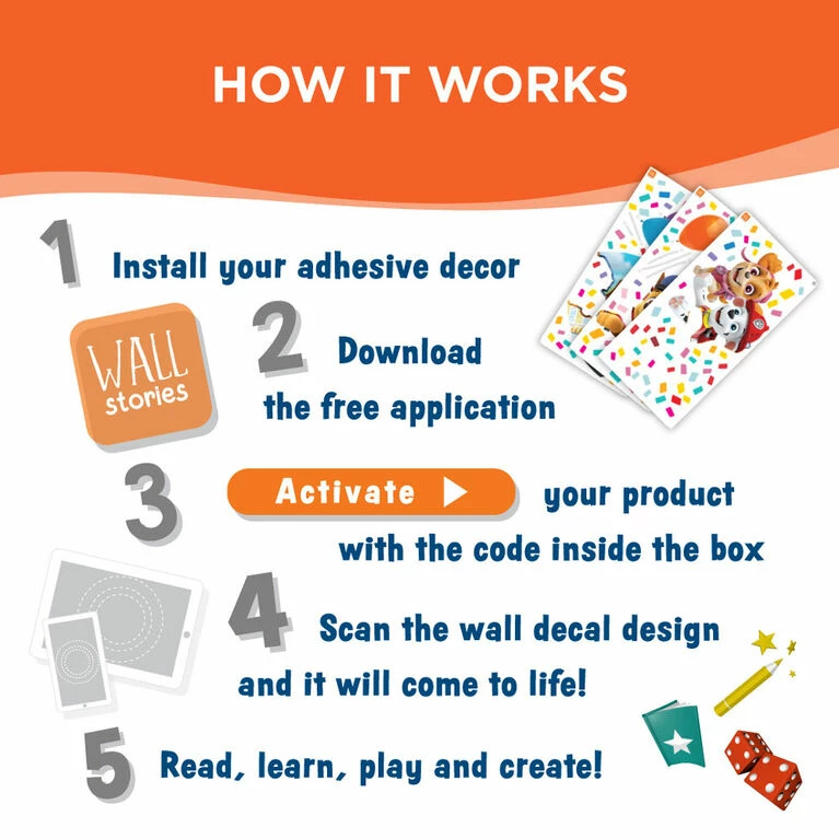 LEARN WHILE YOU PLAY: Have fun and learn at the same time! The interactive app includes 3 learning modes: Story, Games and Creation. This way, the little ones can immerse themselves in stories, entertain themselves with educational activities and even add their own virtual designs and ideas to the wall decor. Intuitive explanations and easy follow-along learning experience. A great way to decorate a nursery, bedroom or playroom quickly and effortlessly. Age: 2-6 years old.