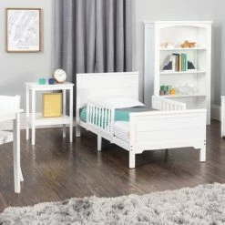 β’ The Forever Eclectic Wilmington Toddler Bed features low to the ground design and included guard rails for added security