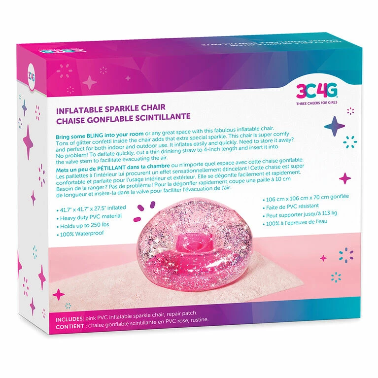 Indoor, outdoors, wherever! Spectacular room jewel 42″ confetti filled chair combines clear and colour vinyl for maximum effect. Extra strength PVC holds ups to 250lbs.