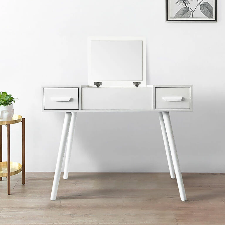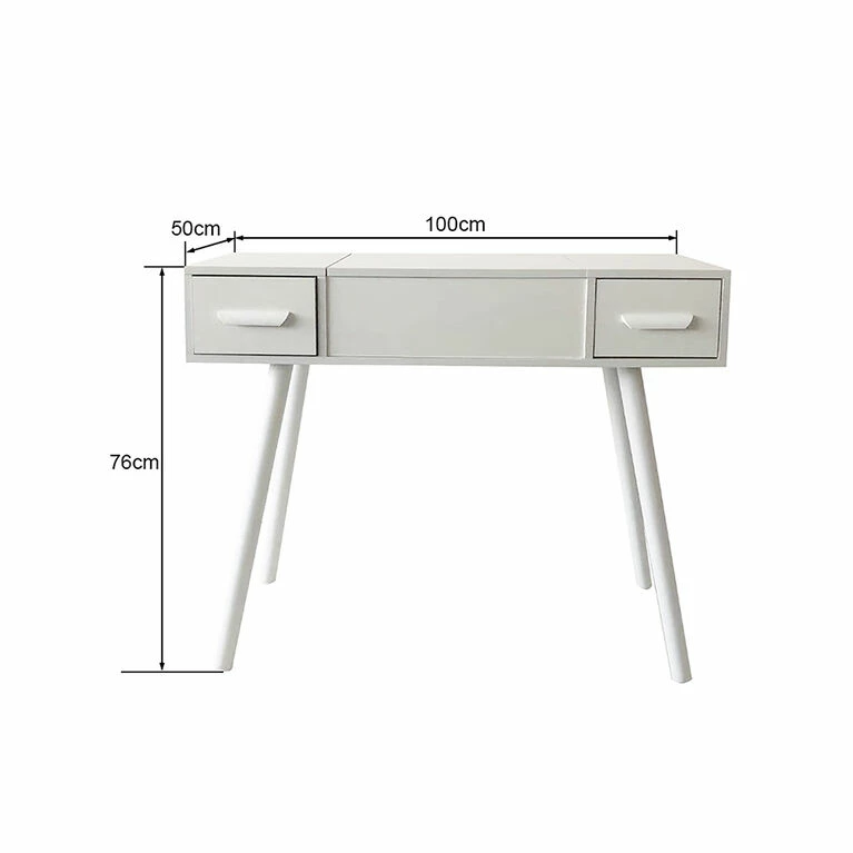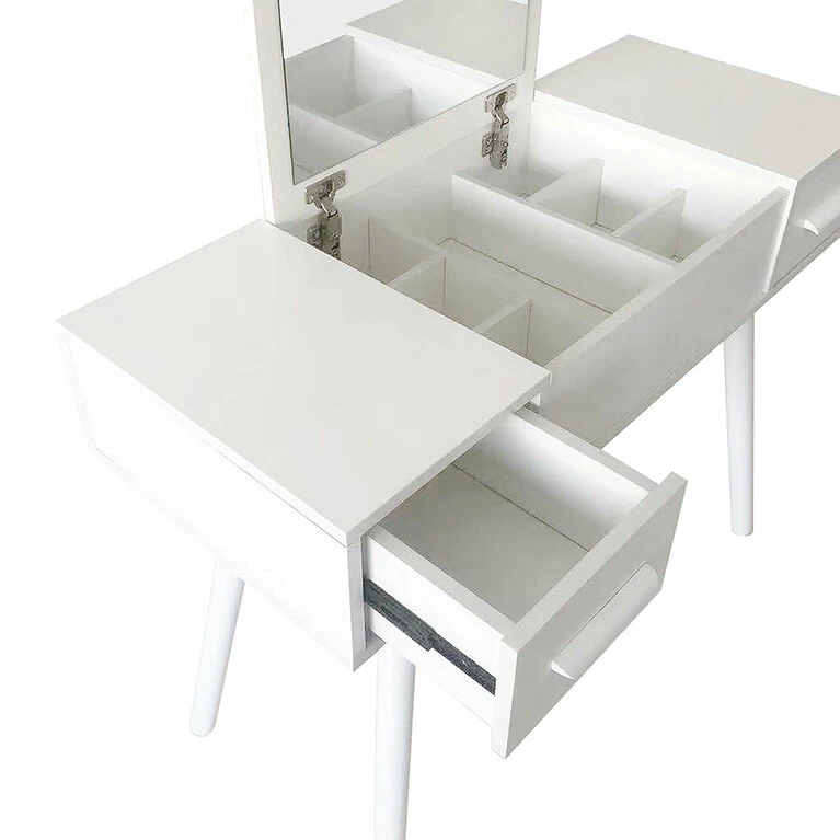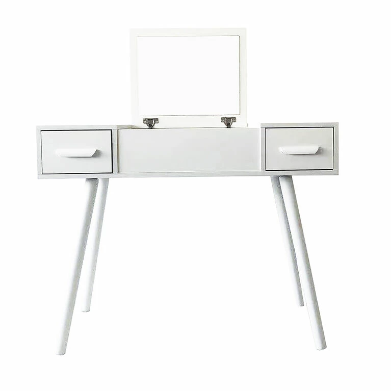 Modern design with efficient use of space will make this vanity desk a beautiful addition to your bedroom, office or multi-purpose room! Use as a bedroom vanity, desk or a combination of both!