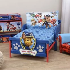 Canines come to life on this PAW Patrol 3D Plastic Toddler Bed from Delta Children! Featuring colorful decals of Chase, Marshall, Rubble and Rocky, this sturdy toddler bed is sure to become your child’s favorite spot. Built with toddler guardrails on both sides and a low to the ground design that allows your child to enter and exit on their own, this bed makes it easy to make the transition from a crib to a “big kid” bed. Adorned with a three dimensional accent on the footboard, this sweet bed is a must-have for any PAW Patrol fan.