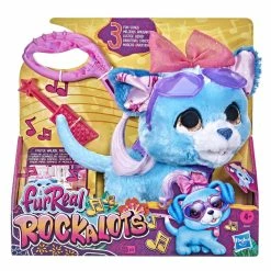 The furReal Rockalots Musical Interactive Walking Puppy is an irresistibly cute, adorably cool pet who rocks as fast as kids do! When you take her for a walk, she plays her 3 fun songs, and they play faster when you walk faster! When you slow down, the songs’ tempo slows down, too. This rockin’ pup comes with a guitar-shaped brush for grooming her soft fur and heart-shaped sunglasses.
