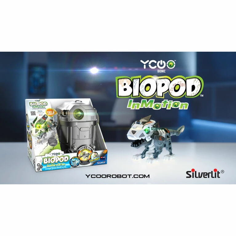 Introducing BIOPOD InMotion by YCOO BIONIC! An electronic walking creature is ready to roar into life from a Mega POD! Fun to build with 25 parts and stickers. Wagging Tails with articulate joints…An electronic walking creature is ready to roar into life from a Mega POD! Fun to build with 25 parts and stickers. Wagging Tails with articulate joints. Button on its head, Sensor on its back! Press to Roar, Wave to Roam! Create your own electronic Creatures with 25 parts to build!