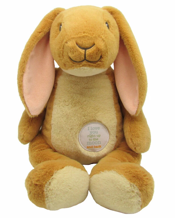 The Guess How Much I Love You Floppy Bunny is perfect for nurseries, play areas and small arms.Β This 14-inch soft, velvety velour plush toy is sure to become your message of love together with the endearing book! The super soft, huggable and loveable version of Nut-brown Hare reminds its owners of the “I love you right up to the moon and back” message embroidered on the belly and offers a squeezable tummy and long limbs for easy holding and loving.