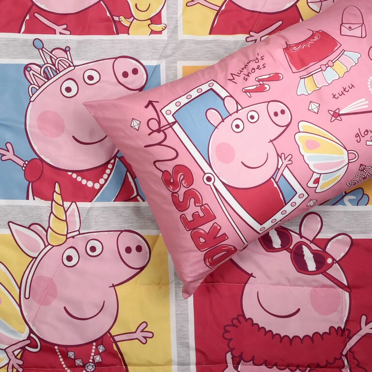 Sit back and let your child relax in the comfort of their new Bedding Set! This 2-piece toddler set includes a comforter and pillowcase showcasing their favourite character, Peppa Pig. This set is the perfect transition for your little one as they continue to grow and is sure to be a favourite!