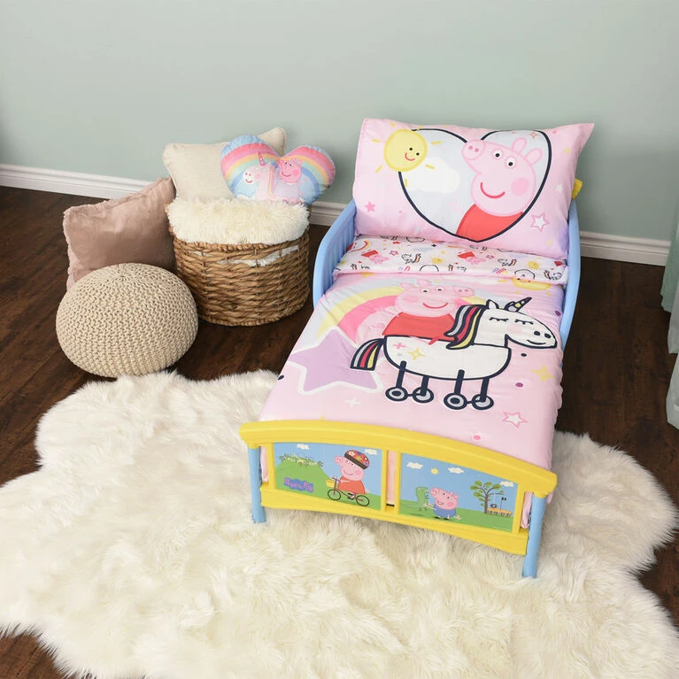 Dream big with this 3pc toddler set of Peppa Pig! This is the perfect way to spruce up your toddlers room with a cheerful design of their favourite character – Peppa!