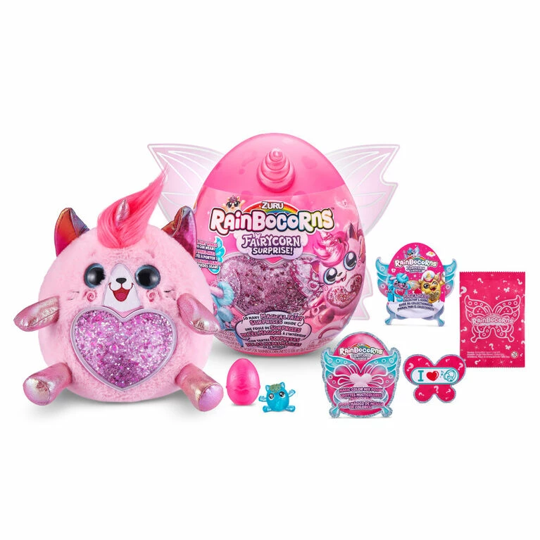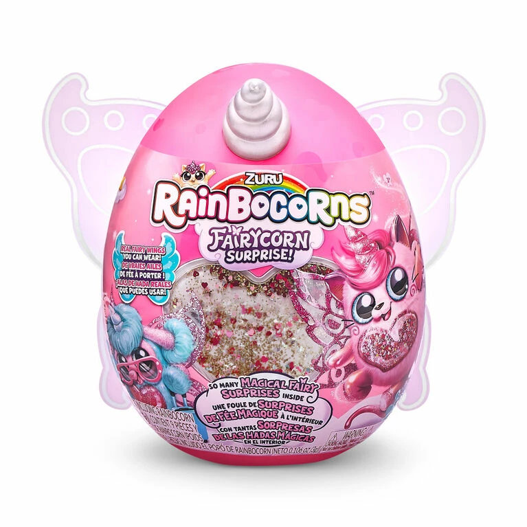 Rainbocorns Fairycorn Surprise is full of magical surprises! Unbox amazing magical fairy surprises including color change poop, a fairy glitter heart, and adorable new Fairy Boo-Boocorns to hatch and collect. There are even magical fairy wings that you can wear! Discover 7 new Rainbocorns including Toof the Bunnycorn, Vacay the Poodlecorn, and Honey the Rare Golden Hippocorn! Who will you find?