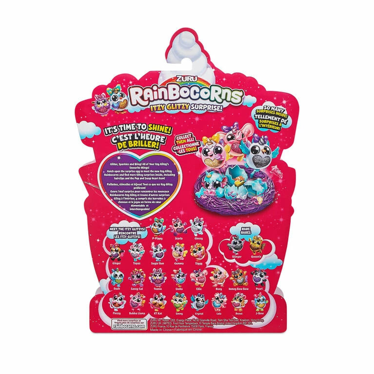 Hatch open the Itzy Glitzy surprise eggs to meet the new Itzy Glitzy Rainbocorns and all their glitzy surprises! There are 26 Itzy Glitzy characters to collect, including the rare golden unicorn and silver flamingocorn! The Itzy Glitzy’s come with so many surprises, including hair clips, rings, bows, wings and pop and swap heart gems! Your Itzy Gltizy character can even be used as a pencil topper! Mix and match the wings and heart between your Itzy Glitzy’s and ring, and collect and swap them all! Who will you find?!