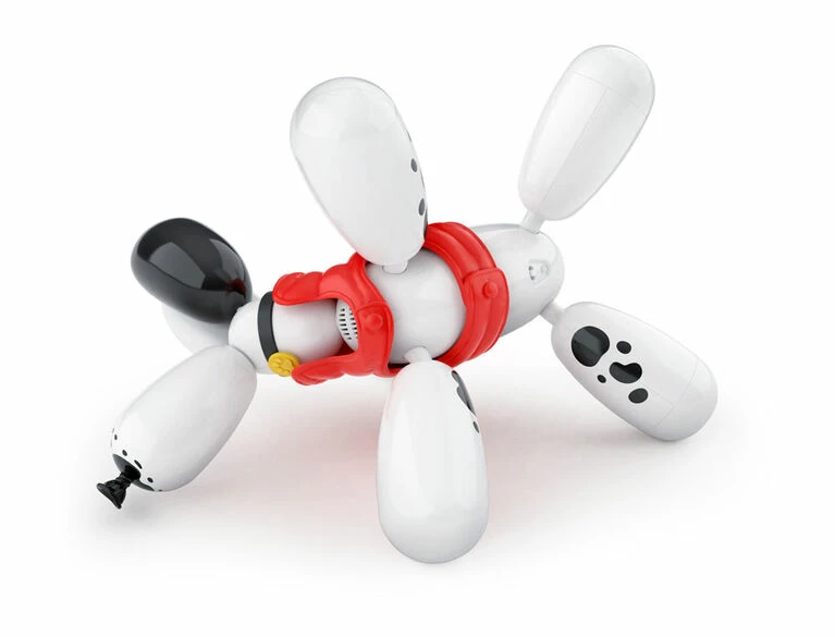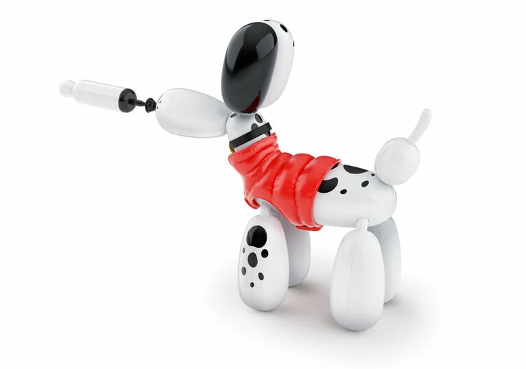 Meet Spotty! The first ever balloon pet that’s inflated with personality! He’ll WOW you as he comes to life just like a real pup! Spotty is so interactive and loves to play with you! This very playful toy responds to your voice, is full of sound and movement and looks just like a real Balloon Dog! Watch him sit and stand as you pet his head or tickle his tummy to make him happy! Spotty comes with a range of fun accessories for you to interact and play with. Use his Pump to feed him. Place the Pump in his nose and hear him inflate! But be careful, when he’s full he may pee or fart! Spotty loves his Squeaker Toy and gets very excited when he hears it! Use his Squeaker Toy to train him to sit or beg! Feed him, teach him, even “POP” him with his Pin and watch him deflate! You’ll be blown away at all his reactions and what he can do! Spotty is your interactive balloon best friend!