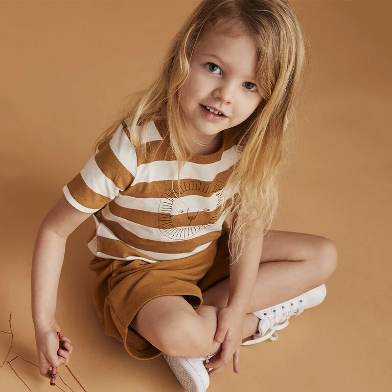 100% organic cotton slub jersey makes this oversized, boxy-fit tee extra soft. Itβs a little longer in the back, making it comfy as can be for playtime. Available in multiple colorways, each one features its own print on the chest and brings some personality to every outfit. So cute with leggings.