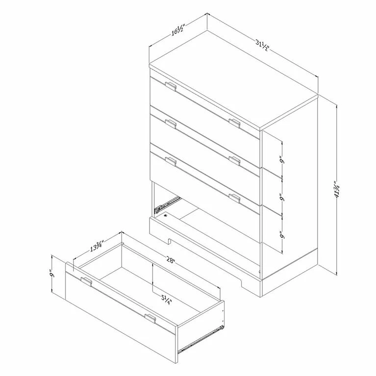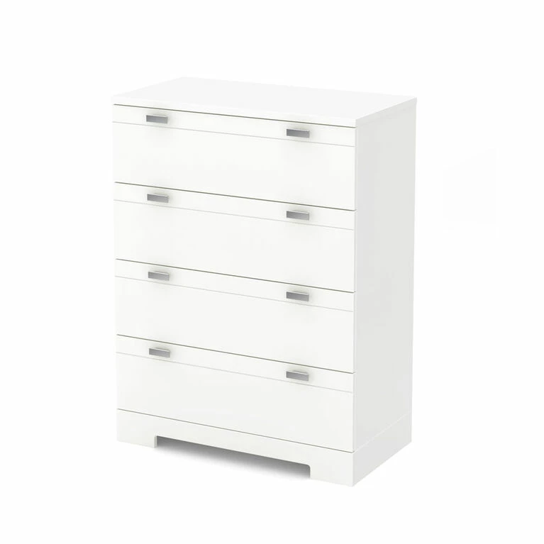 South Shore is proud to stand behind this 4-drawer chest dresser with an exclusive 5-year limited guarantee. Shop with confidence knowing your purchase is always covered. All our products meets or exceeds North American safety standards and our packaging are tested and certified to reduce the risk of damage during shipment. There is a wall anchor kit included in the box to prevent tip-over incidents, thus ensuring your family’s safety.. This item is shipped in 1 box, make sure to have a friend with you. Assembly is required by 2 adults and tools are not included. If you have questions regarding this product or need assistance do not hesitate to contact South Shore Furniture 7 days support. This product is made in North America with laminated particleboard. Accessories not included.