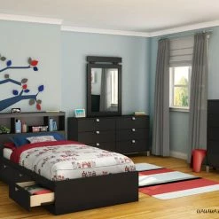 South Shore is proud to stand behind this mate’s platform storage bed with 3 drawers with an exclusive 5-year limited guarantee. Shop with confidence knowing your purchase is always covered. All our products meets or exceeds North American safety standards and our packaging are tested and certified to reduce the risk of damage during shipment. This item is shipped in 1 box, make sure to have a friend with you. Assembly is required by 2 adults and tools are not included. If you have questions regarding this product or need assistance do not hesitate to contact South Shore Furniture 7 days support. This product is made in North America with laminated particleboard. Mattress, headboard and accessories not included.