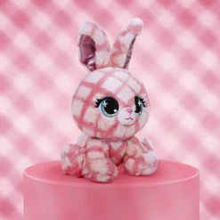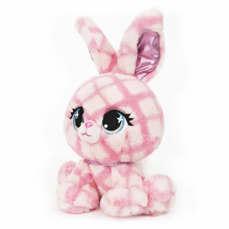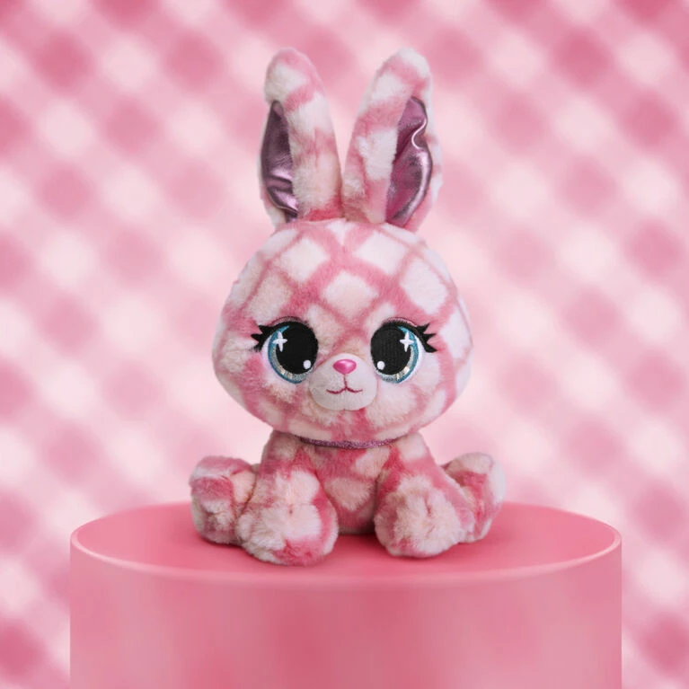 P.Lushes Pets are designer plush from all around the world who love to look their best. Everywhere is your personal runway with P.Lushes Pets! This stylish squad of fabulous fashionistas serves chic with a sprinkle of attitude and a whole lot of glitter. Luxe, premium fabric and a sparkling collar enhance their fashion-inspired looks! In life, it’s important to stay flexible! Trixie Karrats is the queen of keeping it cool in yoga class, impressing everyone with her ultra-flexible moves from her fluffy pink ears down to her fluffy white tail. She keeps is London-chic with her classic pink, super soft plaid fur and sparkling blue eyes. Her shining purple-accented ears match her glittering collar that shows off how to stay perfectly stylish while stretching out on the mat! Collect them all, including the Limited Edition and Special Edition chase plush.