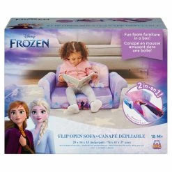 Preschoolers can sit, lounge, and relax on their very own sofa along with their favorite Frozen 2 characters and the Marshmallow Flip-Open Sofa. Just the right size for toddlers, the lightweight polyurethane foam sofa with removable polyester fabric slip-cover stands about 14.75 inches tall, 29.25 inches wide, and is 16 inches deep. It’s decorated with fun graphics, featuring characters from Frozen 2, and sure to brighten any room. Kids can use it as a traditional sofa/chair or have fun flipping the seat over to turn it into a lounger. The lounger, which extends to 39 inches, features vibrant and colorful graphics featuring Elsa, Anna, Olaf, and more, for even more room to play. This functional two-in-one sofa is a comfy spot for kids to sit, read stories, watch movies, eat snacks, play or just relax. Not only is it comfortable, but durable, and easy to clean. The slip-cover can be removed using the child proof zipper on the bottom and then machine-washed with mild soap in cold water. Sofa ships compressed and will expand over time. After removal from packaging, sofa may take up to 24 hours to return to its full size and shape. The Marshmallow Flip Open Sofa is a perfect birthday gift for at home play and relaxation, practical addition to your child’s room, living room, playroom, cottage, vacation, daycare and sleepovers at grandma’s or grandpa’s house for a comfy napping spot.