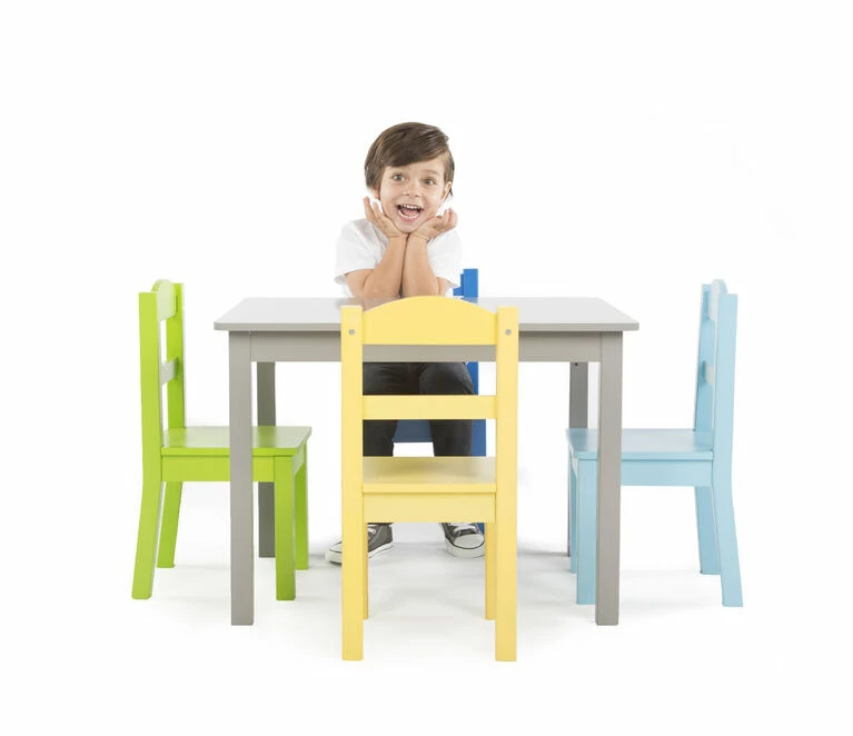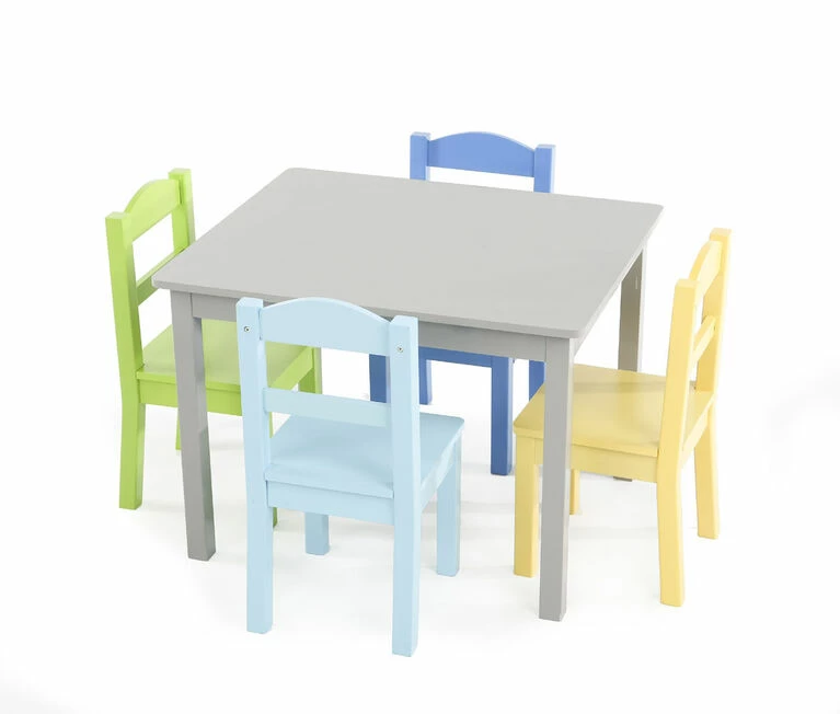 Deals π Tot Tutors Kids Wood Table & 4 Chairs Set, Elements – Grey/Multi π§¨