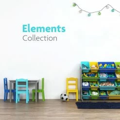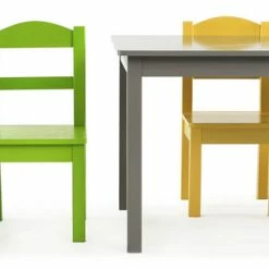 The Tot Tutors Elements Wood Table and 4 Coloured Chairs Set is the perfect size for kids to eat, read books, colour, do arts and crafts, play board games, and just have fun. The sophisticated yet playful ocean inspired colours of this table and chair set is ideal for your child’s bedroom, playroom, or the living room. This piece of furniture is easy to assemble and the sturdy table and chairs are great for boys and girls. Construction on this engineered wood table and chairs set offers solid support and long-lasting durability. The height of this Tot Tutors Table and Chair Set is just right for toddlers and preschool-aged children. Giving your little one a table and chair set at their size gives them a sense of control and helps them learn independence. This piece of furniture is a great fit for all homes, whether large or small. This kids table and chair set comes in multiple colour options to complement the existing furniture in your home as well as the other kids furniture in Tot Tutors’ line of products. Includes rectangular gray table and 4 chairs – blue, green, yellow, light blue. Product sizing – Table: 26″W x 22″D x 19″H; Chairs: 10″W x 10″D x 22″H; Seat height: 10″H.