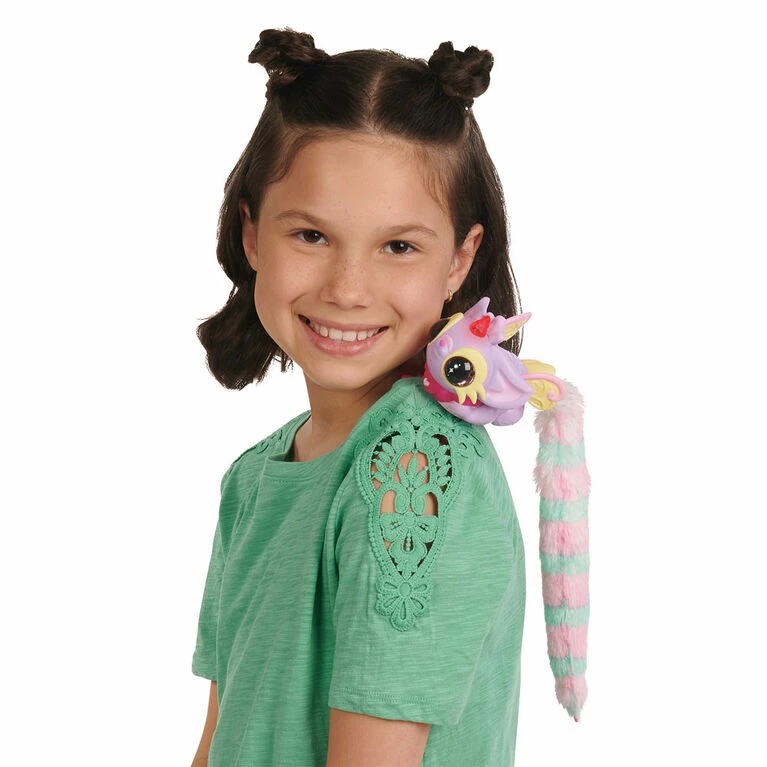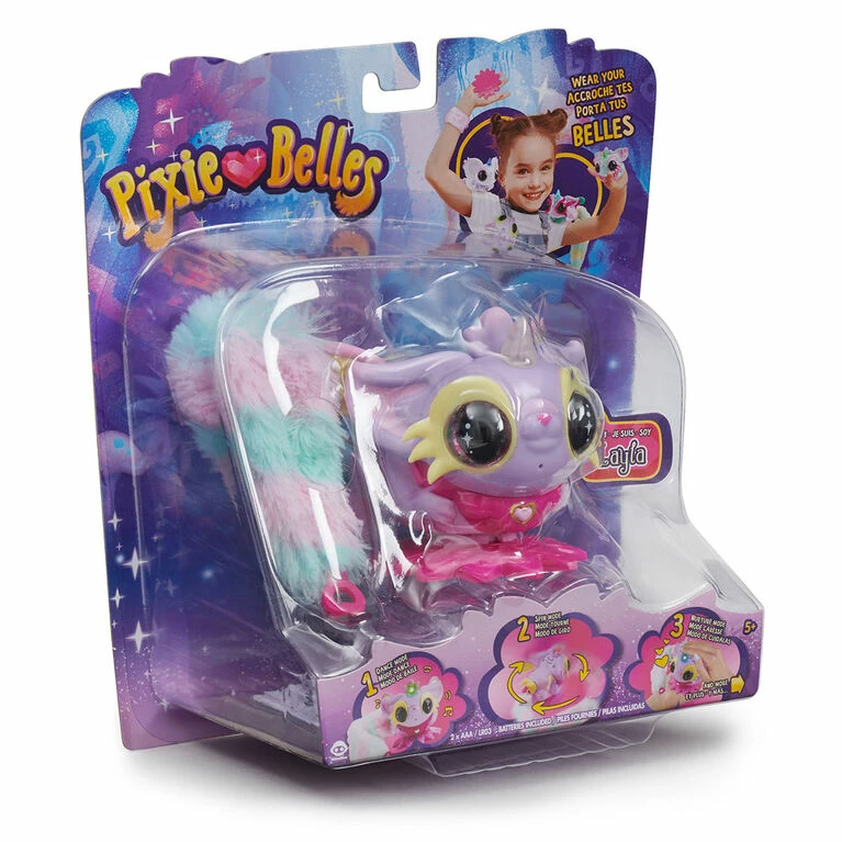 New pet alert! Introducing Pixie Belles, the cutest interactive creatures that bring you love, light, and LOTS of fun movements, wherever you go! With a heart-to-heart connection, you and your Pixie Belles will be inseparable! Bond with your Belles – they let you know their mood based on the color of their light-up horn. Have a dance party – with 6 different dances your Pixie Belles will never miss a beat! Spin time – talk out loud or clap your hands and watch the Belles spin! They react to touch, motion, and sound, and include super soft tails. These unique interchangeable tails double as bracelets, key-chains, and hair accessories that you can wear!