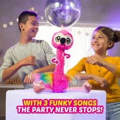 R Exclusive, only available at Toys R Us Canada. There has never been a funkier pet than Frankie the Funky Flamingo from ZURU Pets Alive! Her hilarious neck twirling and vibrant flapping feathers make it impossible to not get up and dance along! She dances & shakes her feathers to 3 funky songs. Frankie also comes with a surprise baby Flamingo, there are two funky hair styled figurines to collect. Who has more FUNK? You or Frankie?