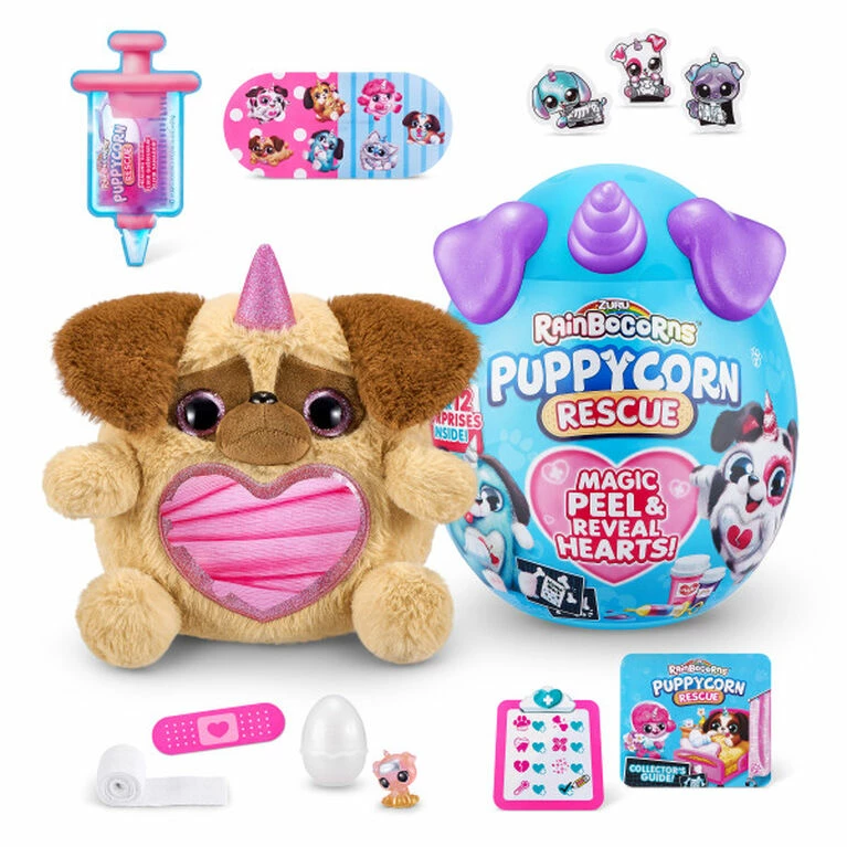 Cuddle and snuggle these furry friends back to health with Rainbocorns Puppycorn Rescue! Over in Rainboville some of the puppies aren’t feeling well and need your hugs and kisses to rescue them! Pop open the egg to find your puppy patient and over 12 magical surprises! Erase the Puppycorns magic heart to reveal what’s got your poorly puppy feeling blue then use the healing accessories like bandages and slime syringes to nurse your Puppycorn back to health. Read the X-Rays and health report to get to know your puppy patient and heal their boo-boos with bandage stickers! There are 7 perfect puppies to nurse back to health each with a new Dr Boo-Boocorn and over 12 surprises to help with your rescue. Will you save Peaches, Beau, Lottie or Squash? Follow the collectors guide to help heal Rainboville one kiss and cuddle at a time with Puppycorn Rescue! Please Note: Colours and styles may vary. Style selected at random by warehouse during time of shipment.